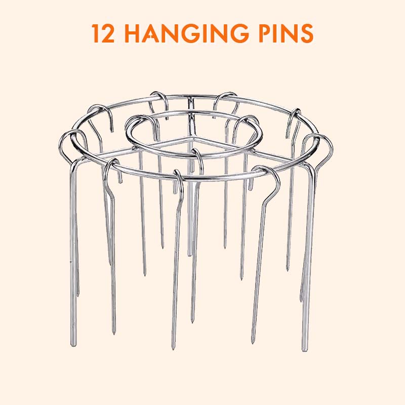 Het hangende ontwerp zorgt ervoor dat hete lucht gelijkmatig rond elke spies circuleert - geen ondergaring, geen verbranding! Geniet van een knapperige buitenkant en een sappige binnenkant! 🤤