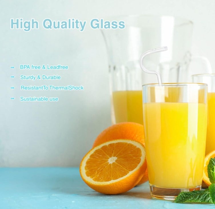 Unsere wiederverwendbaren Glasstrohhalme sind aus hochwertigem Borosilikatglas hergestellt und widerstandsfähig gegen hohe und niedrige Temperaturen. Sie sind die perfekte Alternative zu Plastikstrohhalmen und sind umweltfreundlicher und gesünder. Sie sind außerdem langlebig, spülmaschinenfest und ein toller Begleiter für gekühlte Getränke im Sommer.