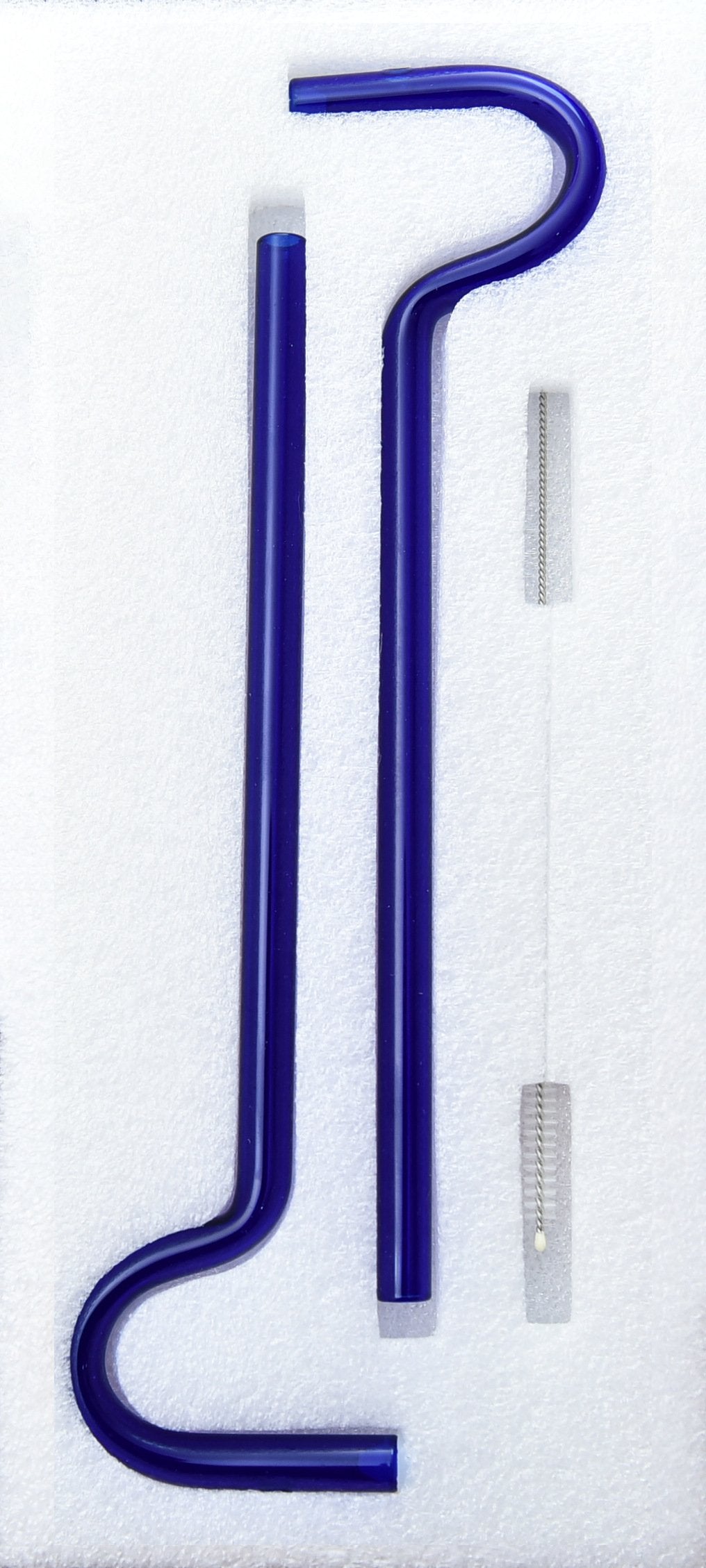Der Strohhalm ist oben gebogen und die Trinköffnung befindet sich oben in der Kurve, so dass der Strohhalm waagerecht an die Lippen geführt wird, ohne dass man sie fest zusammendrücken muss, was Anstrengung bei der Benutzung spart und Falten durch hartes Saugen reduziert.