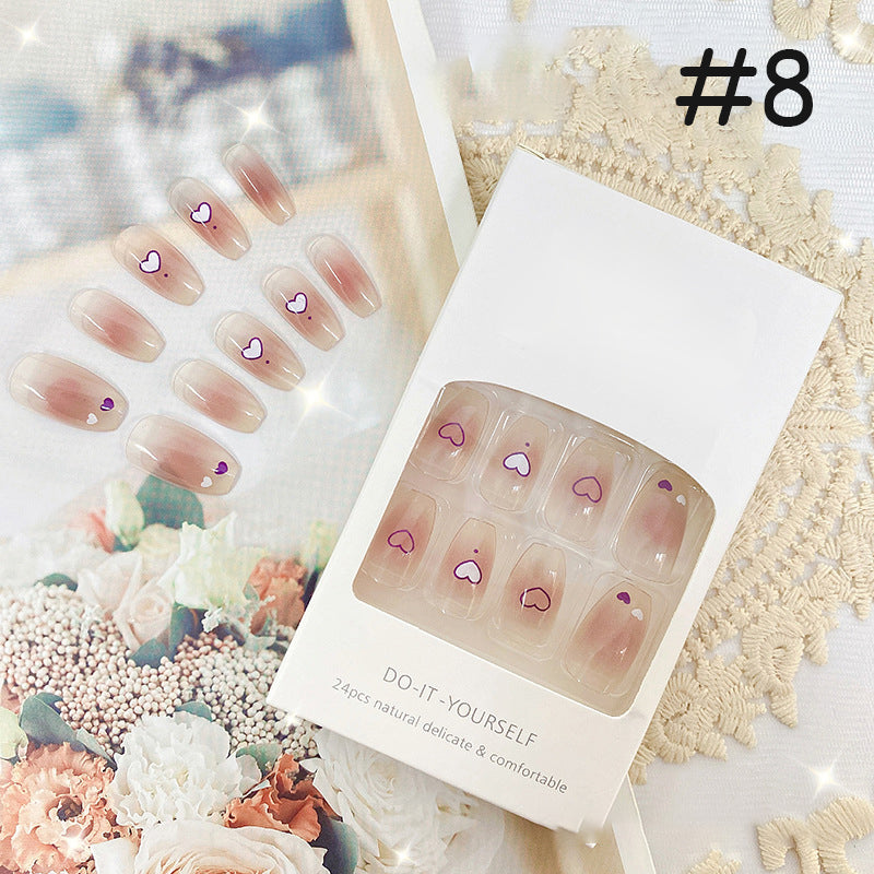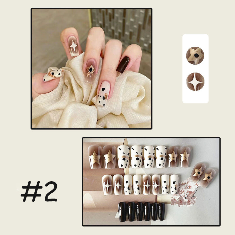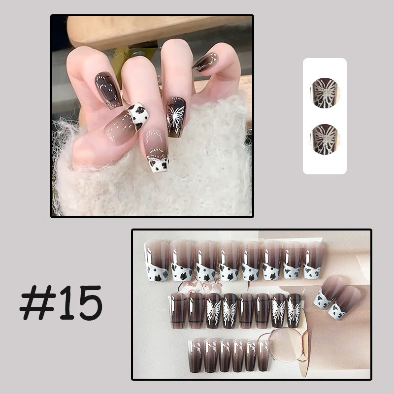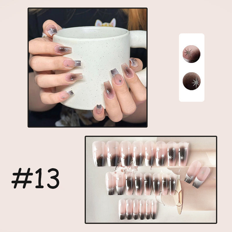 Deze druknagels hebben een verscheidenheid aan designs en nagelvormen die gegarandeerd alle vingers en huidtinten flatteren. Verkrijgbaar in 23 stijlen, waaronder love checkered style, prachtig roze hart, dromerige parel en vlinder, oolong melkgroene kleur, gradiënt blauw en nog veel meer. Zo heb je een scala aan opties, of je nu gaat voor een geraffineerde look, charmante touch, dramatische look, lentetinten, schattig lief en dergelijke. Je hoeft niet langer naar professionele nagelstylisten te rennen voor die moeiteloos prachtige nagels. Perfect voor dagelijks gebruik, feestjes, bruiloften, verjaardagen, concerten, gala's, afspraakjes en andere speciale gelegenheden. We bieden ook een gelpolish kit zodat je nepnagels kunt aanbrengen zonder naar een andere winkel te hoeven gaan! -