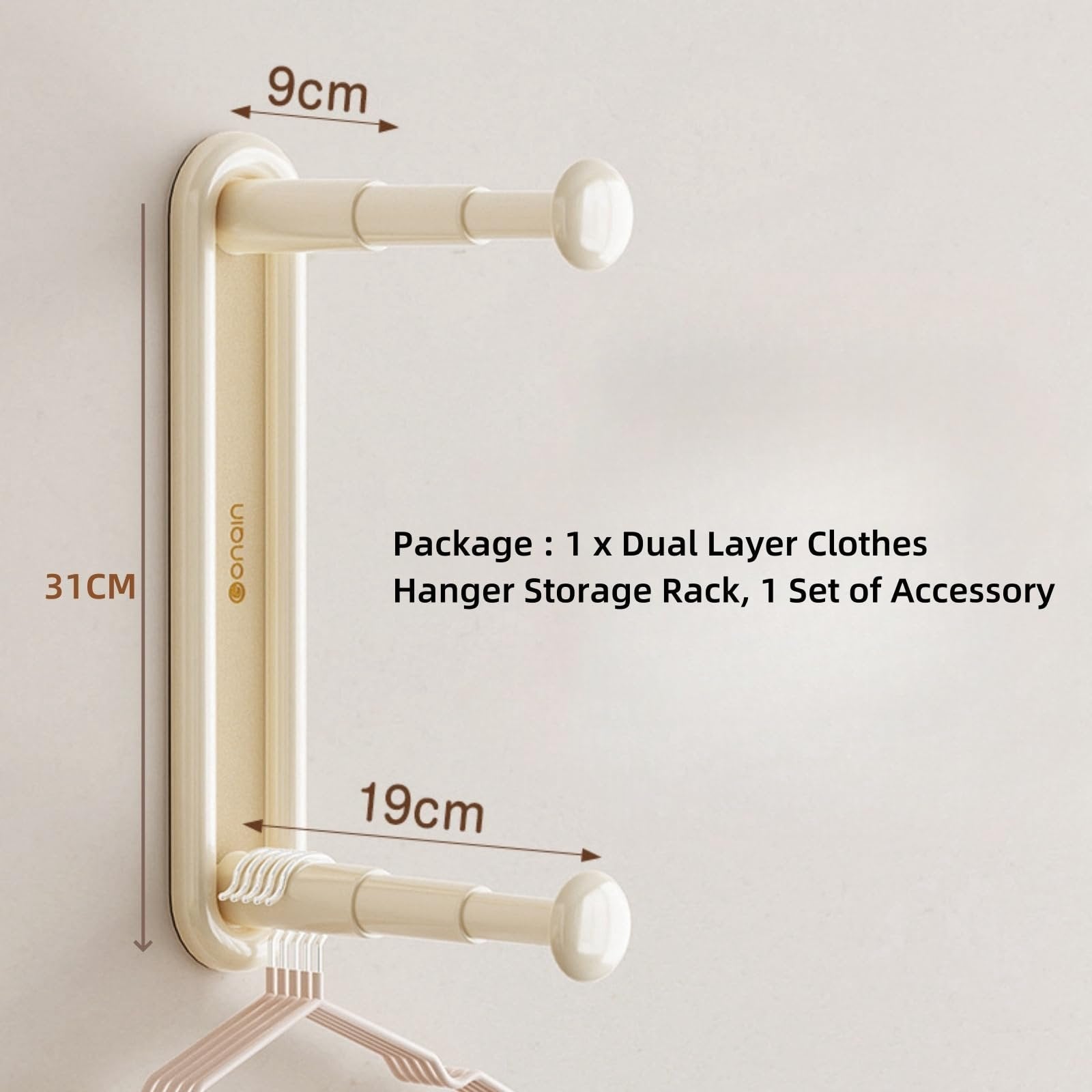 Verstelbare maat: de wandgemonteerde kleerhangerstang is L19 x H31CM en biedt plaats aan 50-65 hangers, wat een effectief opbergeffect bereikt.