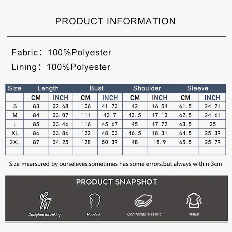 - Waterafstotende buitenlaag: De jas is gemaakt van 100% polyester en is bestand tegen lichte regen en mist, zodat u ook op onverwachts natte dagen droog en comfortabel blijft. Nooit meer hectisch zoeken naar een paraplu als het begint te miezeren!