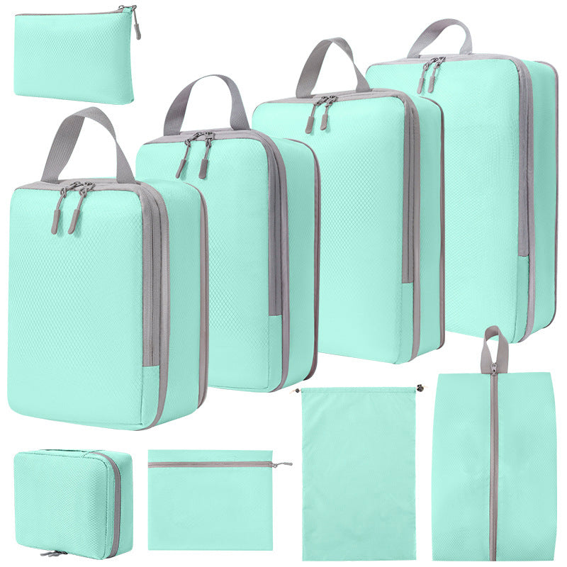 - 【Pas uw bagage aan】Wordt geleverd met 9 reisverpakkingsorganisatoren voor verschillende soorten bagage. U kunt ze op elke gewenste manier plaatsen. Bijvoorbeeld: 4X kledingtas voor jas en trui, 1X toilettas voor toiletartikelen, 1X kleine blokjes voor ondergoed, 1X schoenentas voor schoenen, 1X waszak voor vuile kleding, 1X accessoirestas voor elektronische accessoires.