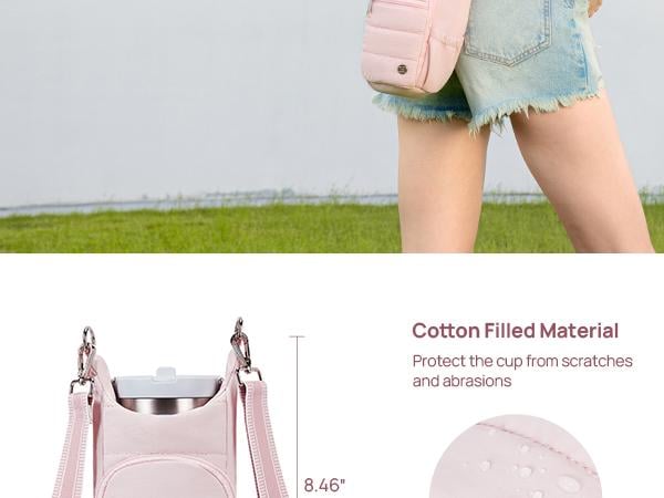 Gemaakt van waterdichte donsstof - ultrazacht, schokbestendig en comfortabel om te dragen. Houdt je fles veilig zonder bulk toe te voegen. (Niet machinewasbaar)