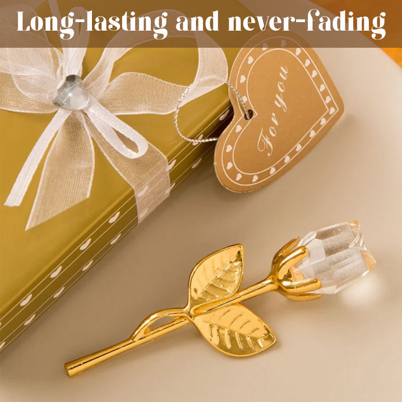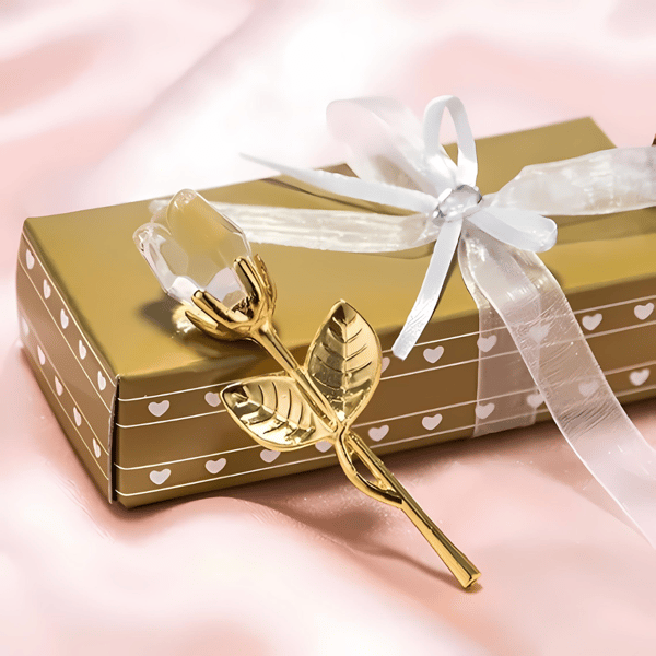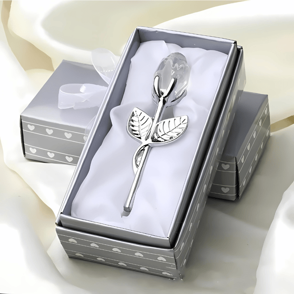 De kristallen roos is gemaakt van geslepen kristal, dat water- en druppelbestendig is. Het is ook gemaakt van roestvrij staal, geverfd met een duurzame en langdurige verf. Deze roos is ontworpen om het ideale formaat te hebben voor een cadeau, want hij is zeer comfortabel en gemakkelijk vast te houden. De roos wordt geleverd in een elegante en versierde geschenkdoos.