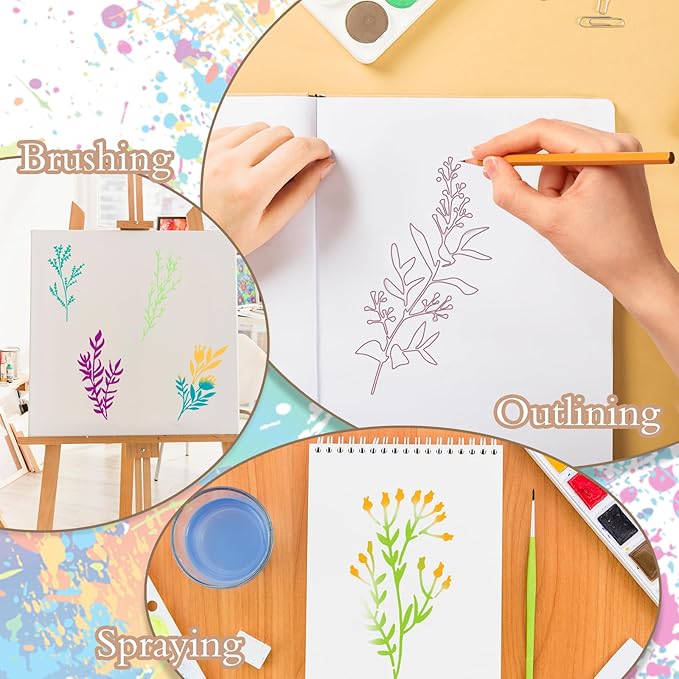 Professioneel ontwerp: Wildflower ambachtelijke stencils met gefileerde hoek ontwerp zonder krassen op tekeningen en je hand, glad in oppervlak om gemakkelijk te schilderen en schoon te maken, wasbaar en herbruikbaar, flexibel, handig om vele malen te gebruiken.