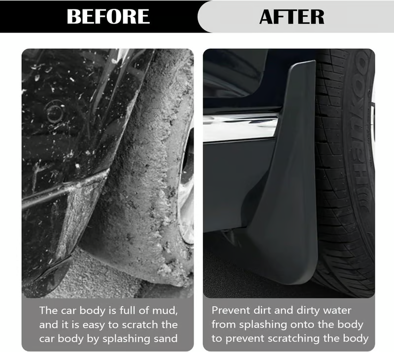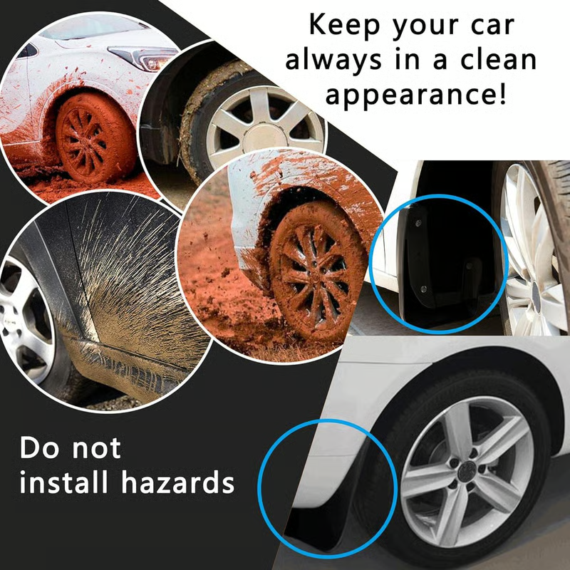ćVoorkom opspattend vuilć Laat de opspattende aarde je prachtige carrosserie niet bedekken! Dit heeft niet alleen invloed op de esthetiek van je auto, maar ook op je rijervaring! Laat deze praktische spatlappen een sterk schild worden voor uw geliefde auto! Ze kunnen in hoge mate voorkomen dat er vuil op de autobanden en carrosserie spat. Houd uw auto altijd in een schone look!