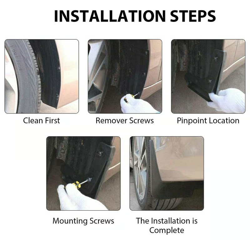 ćEenvoudige installatie ćDe installatie van spatborden voor vrachtwagens is heel eenvoudig, je hoeft alleen maar eerst de installatiepositie te bepalen en dan schroefonderdelen te gebruiken om het spatbord stevig achter de autobanden te bevestigen. U kunt het spatbord vrij snijden volgens de vorm van de autobanden.