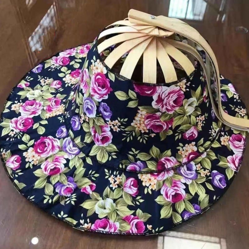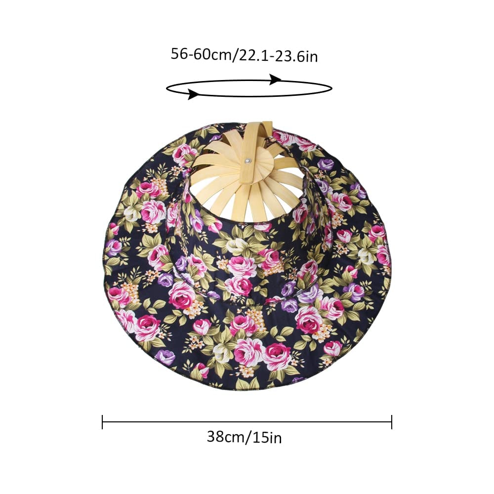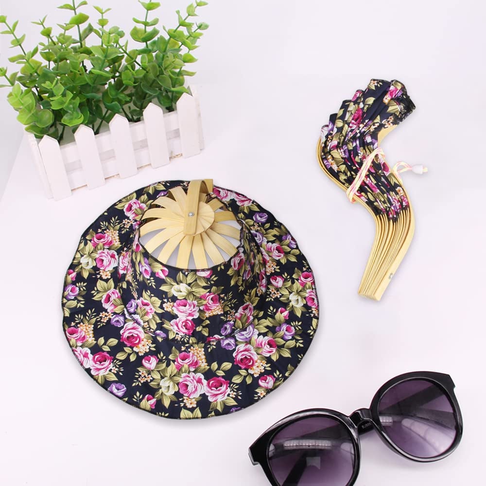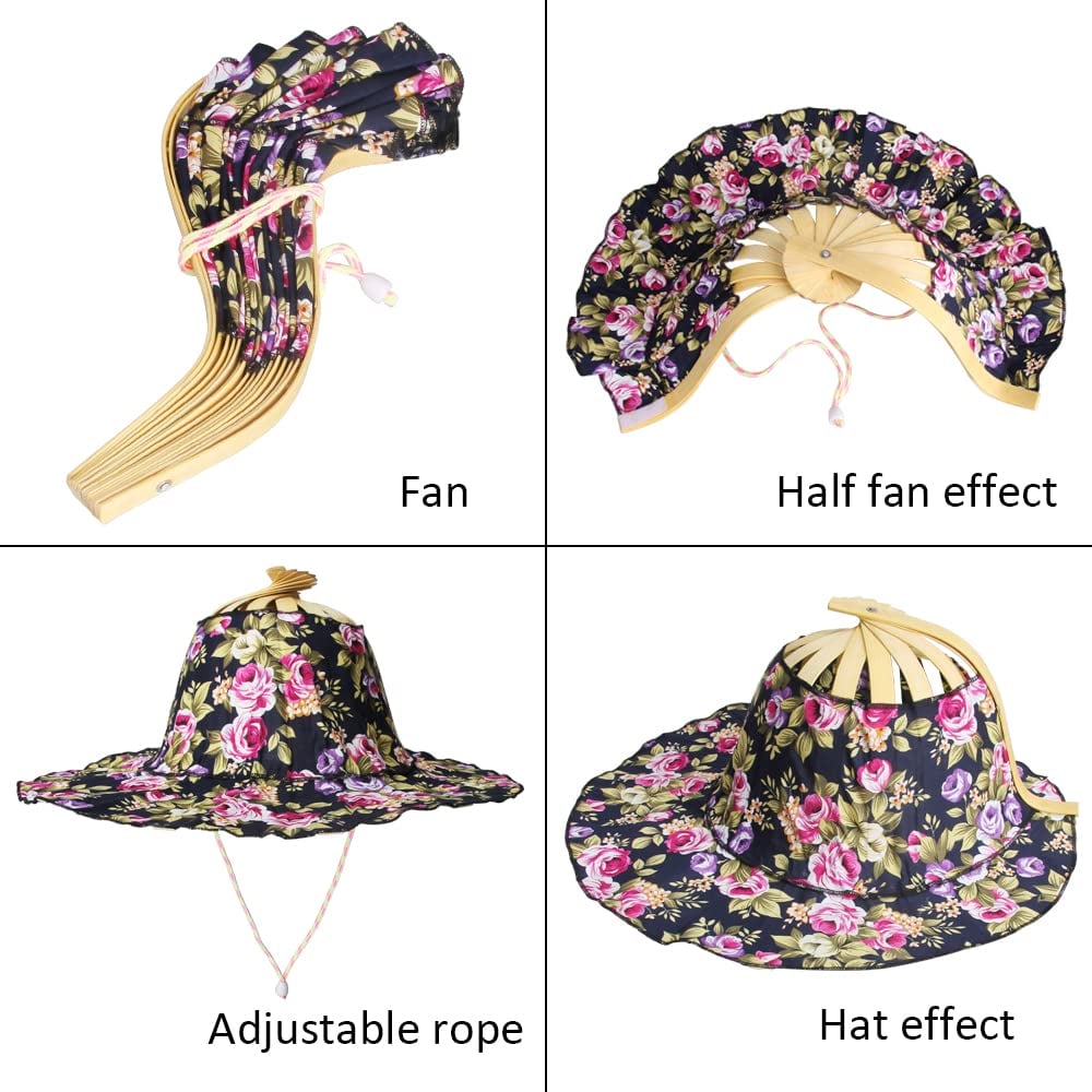 Materiaal: De waaierhoed is handgemaakt met bamboe, sterk en duurzaam voor dagelijks gebruik. Stijlvolle bedrukte katoenen stof en het bovenste holle ontwerp maken het ademend en koel om te dragen.