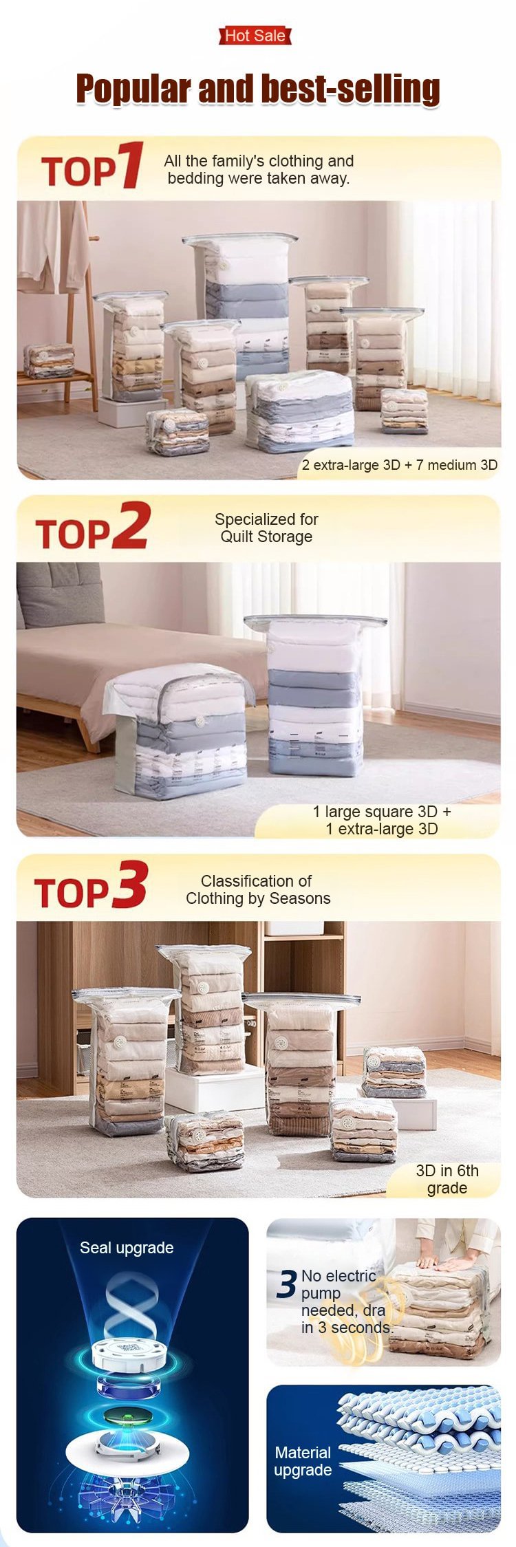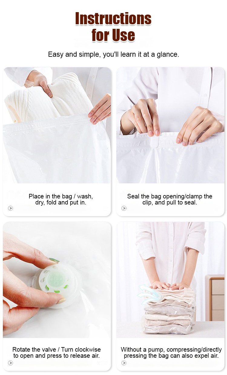Herbruikbare vacuümvrije compressie-opslagzakken