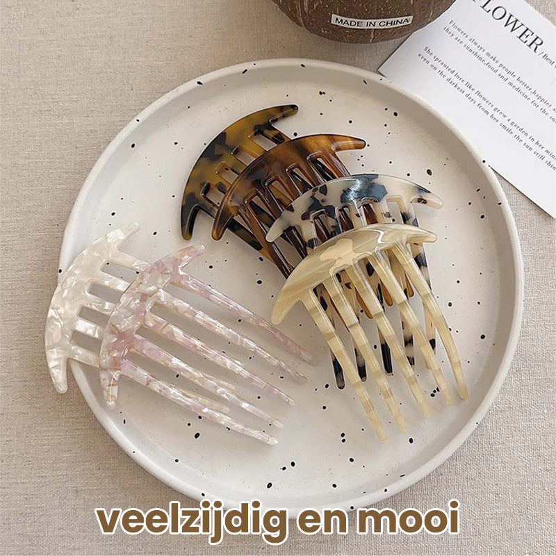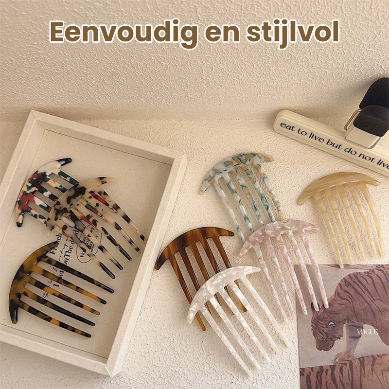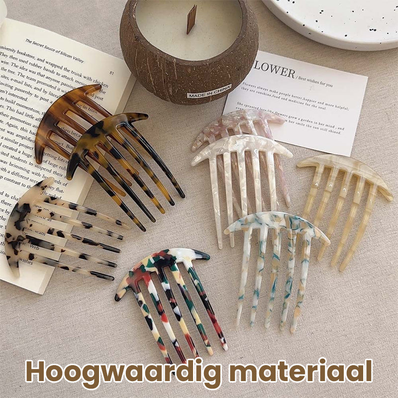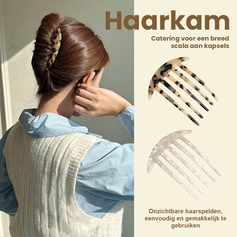 Wil je een elegant kapsel? Deze inzetkam komt ook goed van pas! Of het nu een eenvoudige, lage paardenstaart of een complexe knot is, het biedt je de perfecte ondersteuning om je te helpen een verscheidenheid aan stijlen te realiseren. Laat elke keer dat u uitgaat uw modeshow zijn!