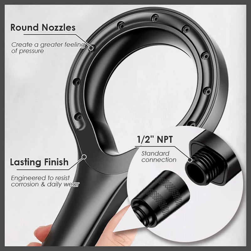 Deze waterverhogende douchekop ondersteunt een energiedruk met een lager debiet om verspilling te minimaliseren en waterkosten te besparen. Hij heeft een lichtgewicht en antislip, ergonomisch ontwerp dat geschikt is voor zowel handsfree douchen als douchen met de hand. Wat nog meer? De douchekop heeft een hydrofobe coating en antiblokkeerfunctie die kalk- en vuilafzetting voorkomt. De douchekop heeft een niet-schadelijke, eenvoudige plug-and-play-installatie die naadloos past op bijna elke douche-interface zonder te lekken. Geschikt voor het verbeteren van lage waterdruk in badkamers thuis, gastenbadkamers, doucheruimtes, hotels, appartementen, slaapzalen enzovoort.
