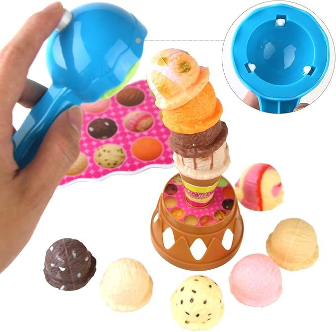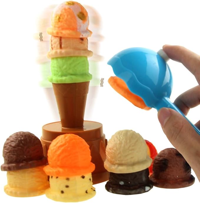 - Het doel van het spel is om de 12 bolletjes ijs één voor één zo veel mogelijk te stapelen en in evenwicht te brengen zonder dat ze instorten! Daag je kleintjes uit door ze te vragen om ijs te bouwen zonder de toren omver te werpen! Het kan gespeeld worden door 1 of maximaal 4 spelers. Het is een strijd van evenwicht en coördinatie. Kijk hoeveel bolletjes jij en je vrienden op de kegel kunnen stapelen.