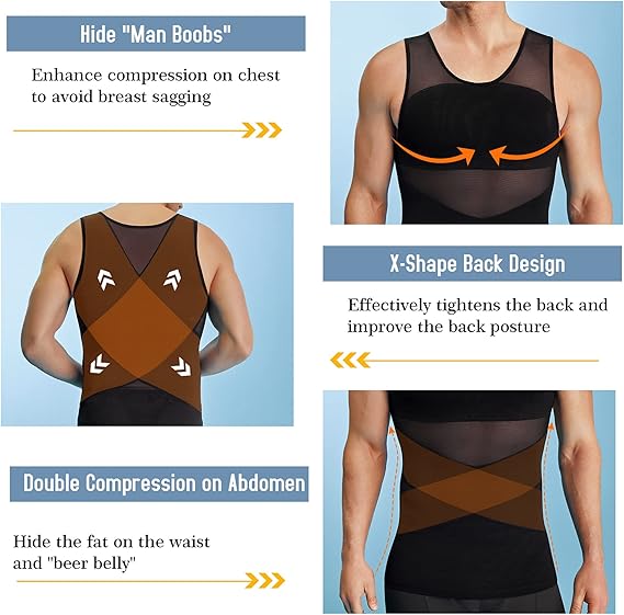 Ditstrakke mannenkorset is ontworpen voor mannen die hun uiterlijk willen verbeteren. Dit korset helpt om een slanker bovenlichaam te creëren en je zelfverzekerder te laten lijken. De compressiestof van hoge kwaliteit zorgt ervoor dat het niet gemakkelijk uitzakt en zijn vorm verliest. Voldoende elasticiteit geeft je geen verstikkend gevoel en vervormt niet snel na het wassen. Het mesh-ontwerp is ademend en comfortabel om te dragen als onderhemd.