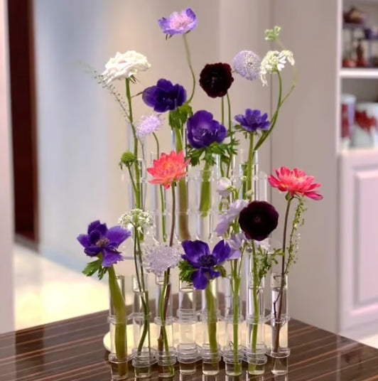 💞Kan vrij worden gebogen: 1 vaas/eenheid, bestaande uit 6 of 8 individuele bloemenbuizen die aan elkaar scharnieren, onze bloemenvazen voor centerpieces kunnen worden gebogen en vervormd in verschillende lijnen, rondingen en clusters. Zet wat bloemen in de vaas die bij je decor passen zodat het er prachtig uitziet.