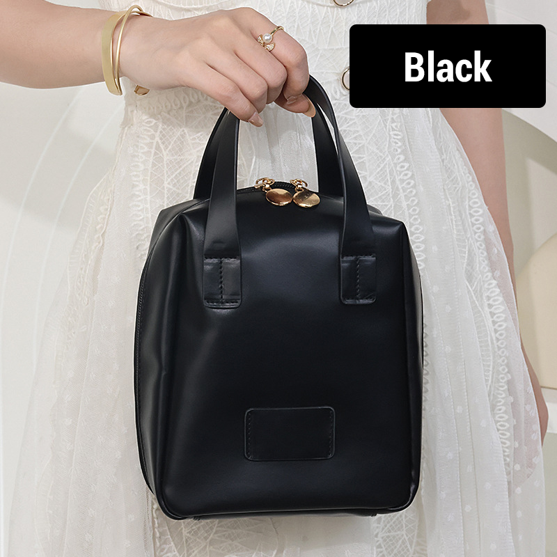 De stevige tas is gemaakt van leer en hoogwaardige materialen met opbergvakken om rommel op te ruimen en al je beautyproducten handig te ordenen.