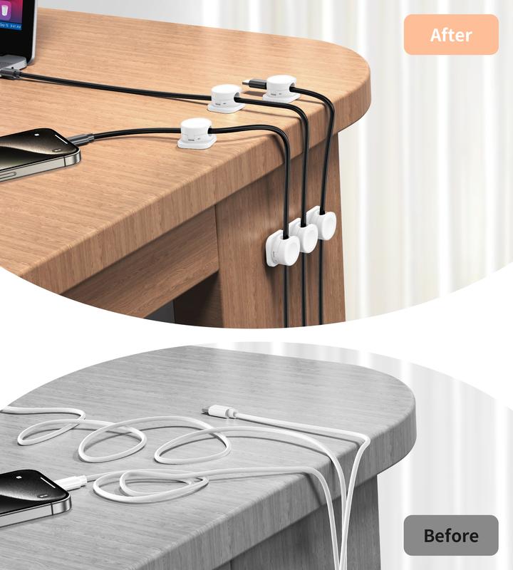 [Enhanced No-Residue Adhesive] Zeg vaarwel tegen rommel en hallo tegen eenvoudige organisatie! Dankzij de sterke kleeflaag hecht deze magnetische kabelopberger stevig aan bijna elk vlak oppervlak - hout, metaal, tegels of beton! Bovendien kun je hem zonder residu verwijderen, zodat je oppervlak ongerept blijft!