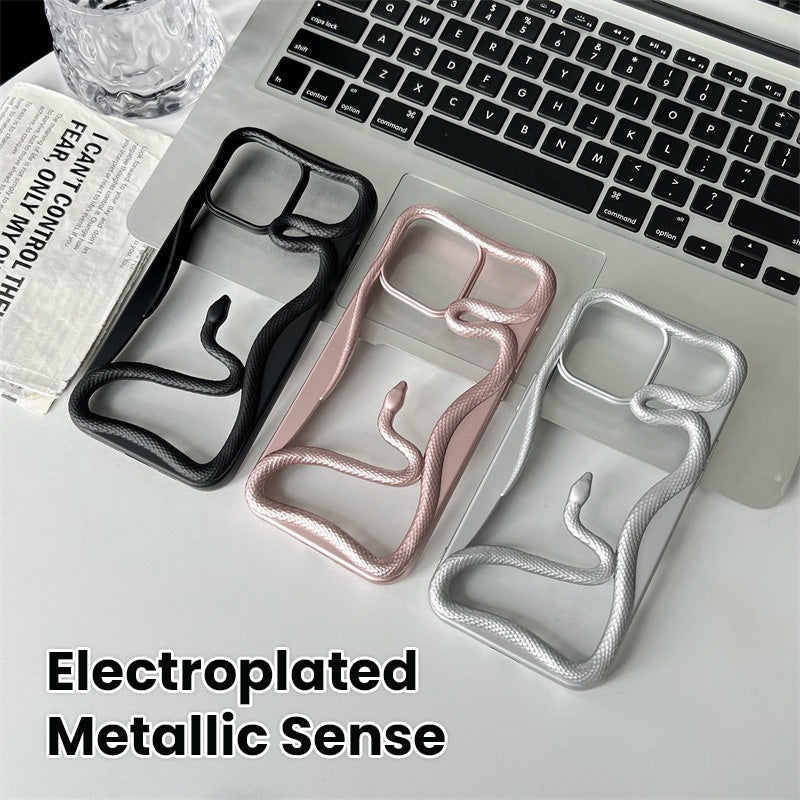 Een gedurfd 3D-slangontwerp dat als een meesterwerk van moderne kunst om je telefoon kronkelt! Met de gegalvaniseerde metallic textuur straalt dit hoesje een ongetemde en onverschrokken persoonlijkheid uit.