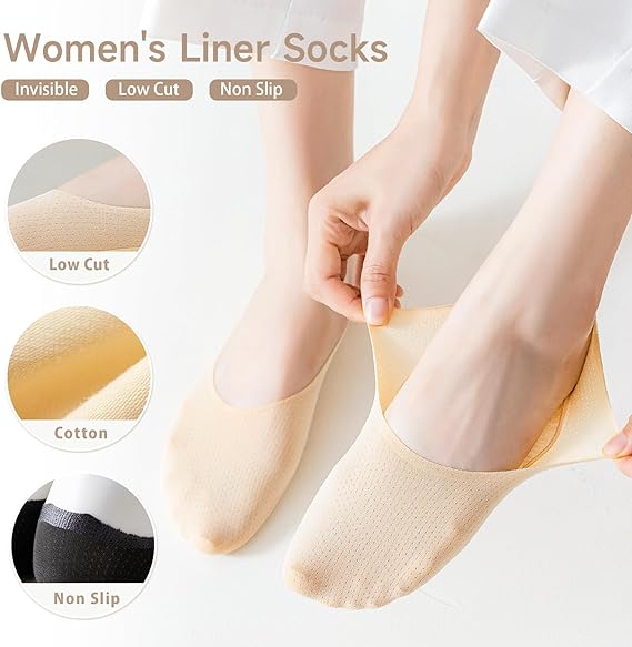 Dit zijn UITERST laag uitgesneden no show voeringsokken, die alleen de tenen bedekken en onzichtbaar zijn in je trendy schoenen. Ze zijn geweldig voor een verscheidenheid aan geklede damesschoenen, zoals platte schoenen, pumps, ballerina's, oxfords, loafers, slippers, schoenen met hoge hakken, sneakers, enz.