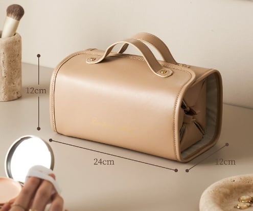 Deze tas met grote capaciteit meet 24*12*12 cm en biedt voldoende ruimte voor al je make-up en toiletartikelen. Houd alles netjes georganiseerd, van kwasten tot flesjes, zelfs tijdens het reizen.