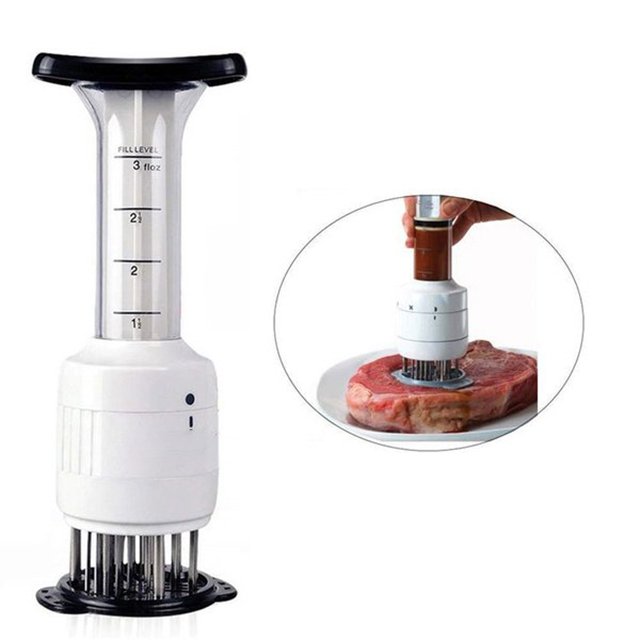 Het heeft roestvrijstalen messen die het vlees doorboren om het malser te maken, terwijl de 3 smaaknaalden de gewenste marinade injecteren.