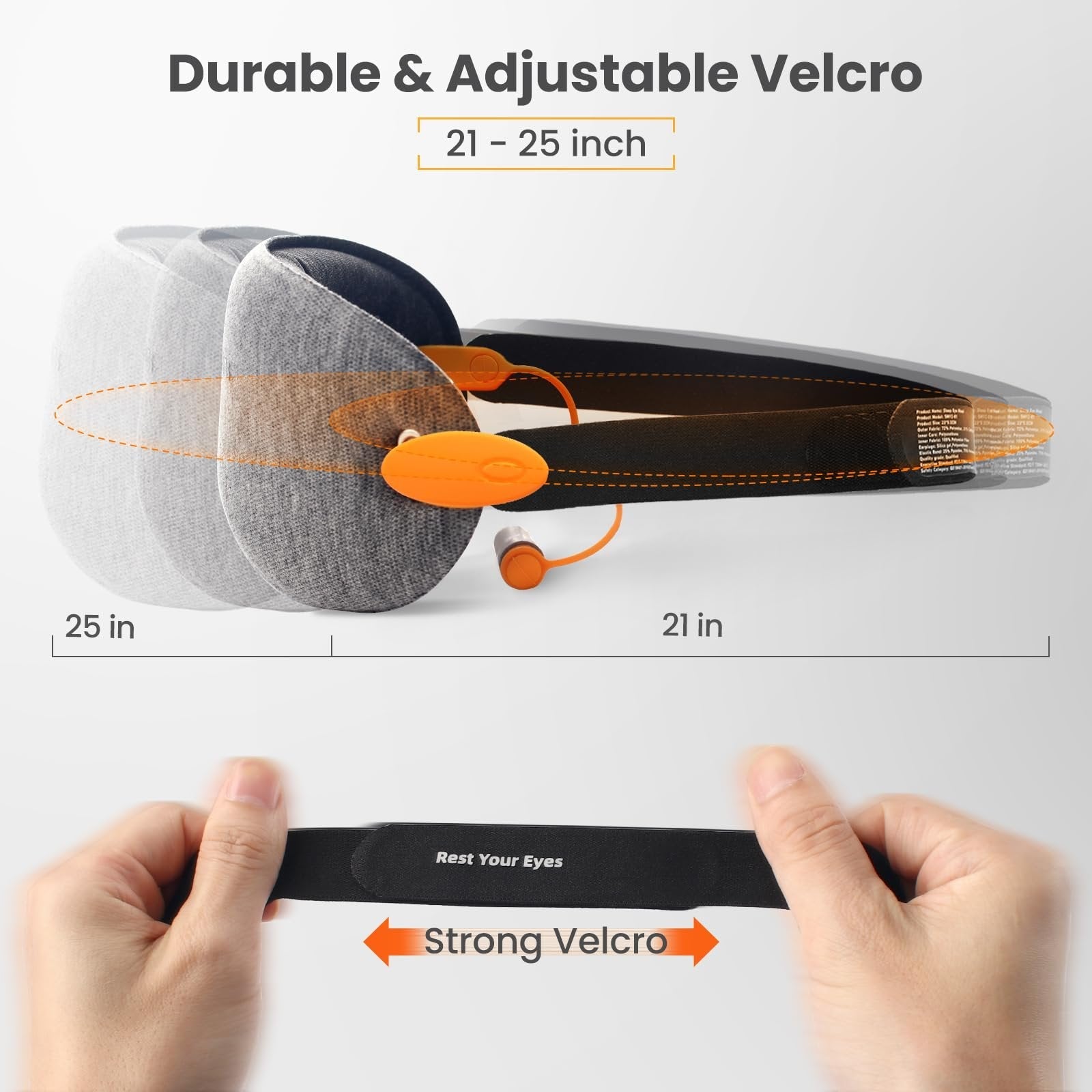 ā Verstelbaar Velcro Oogmasker: Het oogmasker en oogmasker zijn zorgvuldig ontworpen om zich aan te passen aan verschillende hoofdvormen en comfortvoorkeuren. Het heeft een verstelbare Velcro voor een persoonlijke pasvorm en positionering, wat zorgt voor een geschikte pasvorm voor mensen van alle leeftijden. De duurzame nylon gesp zorgt voor langdurig gebruik, waardoor het een ideale keuze is voor zijslapers.