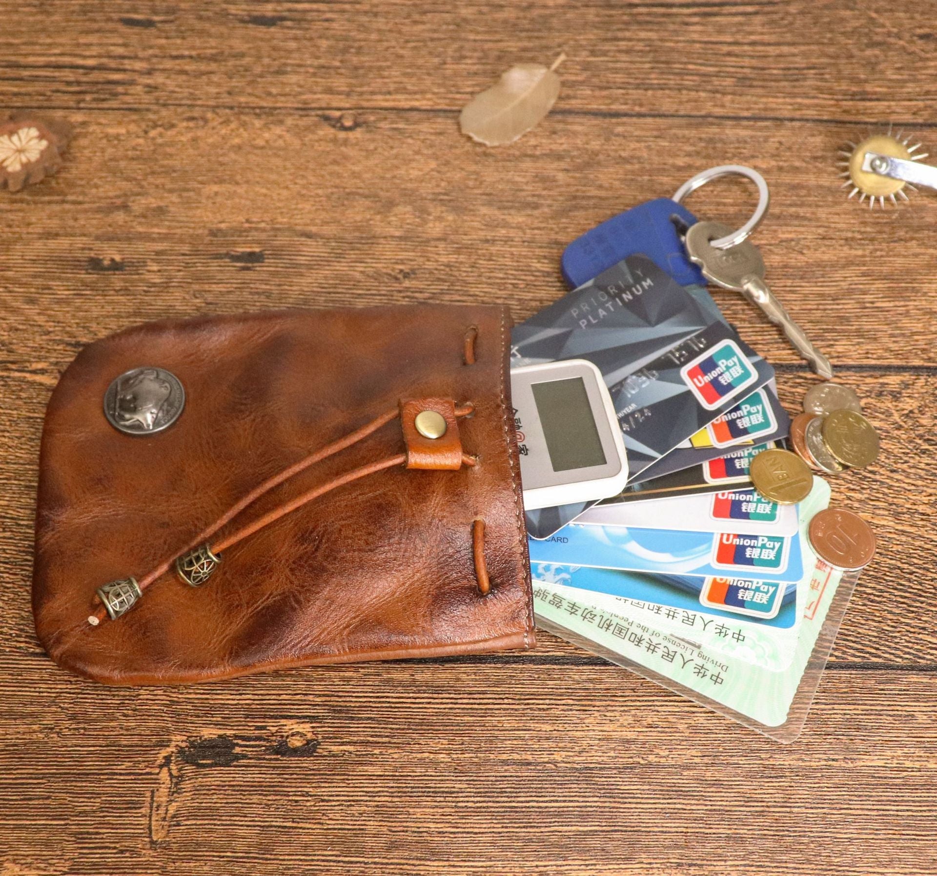 Retro handgemaakte Cowhide Opbergtas, Penning Tasje
