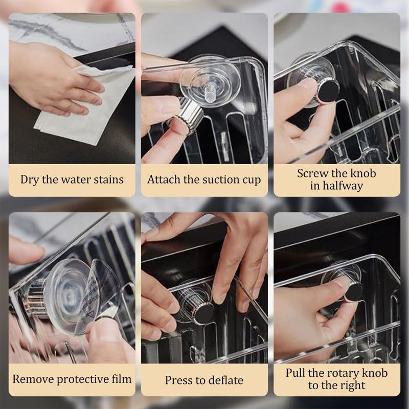 Dankzij het robuuste aanzuigsysteem kan deze mand zware schoonmaakspullen zoals sponzen, schrobbers en doeken vasthouden zonder bang te zijn dat ze vallen. Hij blijft stevig op zijn plaats, zelfs tijdens intensieve keukentaken!