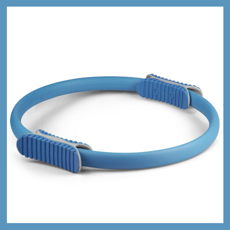 De gebogen handgrepen aan de zijkant maken het ook gemakkelijk om de ring tussen de knieën te houden voor oefeningen aan de binnen- en buitenkant van de dijen of onder een enkel wanneer je de ring tegen de vloer drukt tijdens been- of kernoefeningen. -