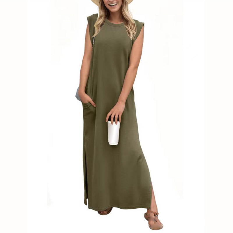 Rimpelvrije Casual Jurk Voor Dames Met Splitzoom