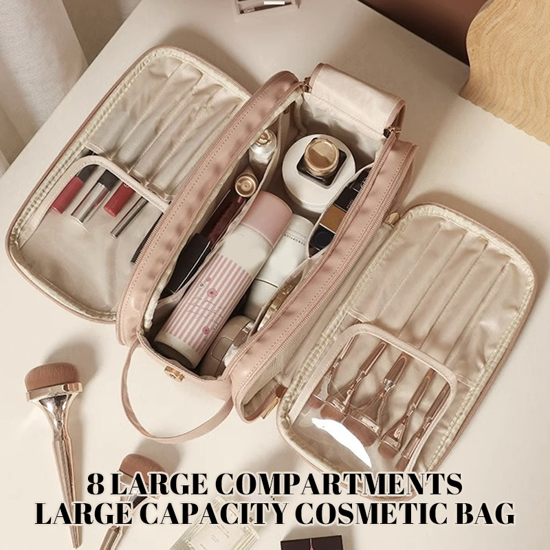 💼 Multifunctioneel ontwerp: Met meerdere compartimenten, vakken en verstelbare verdelers past deze tas zich aan uw unieke behoeften aan en biedt plaats aan alles, van lippenstift tot penselen en zelfs kleine huidverzorgingsproducten.