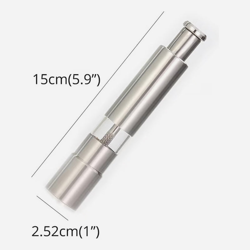 Gemaakt van hoogwaardig roestvrij staal, is deze grinder gebouwd om de tand des tijds te doorstaan. Het strakke design past moeiteloos in elke keuken of eetkamer. En dankzij het compacte formaat is hij gemakkelijk op te bergen of mee te nemen. U hoeft zich nooit zorgen te maken dat uw grinder te veel ruimte inneemt!