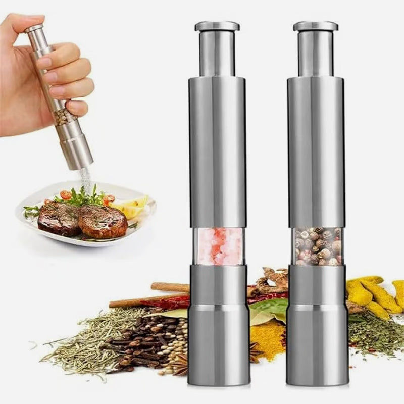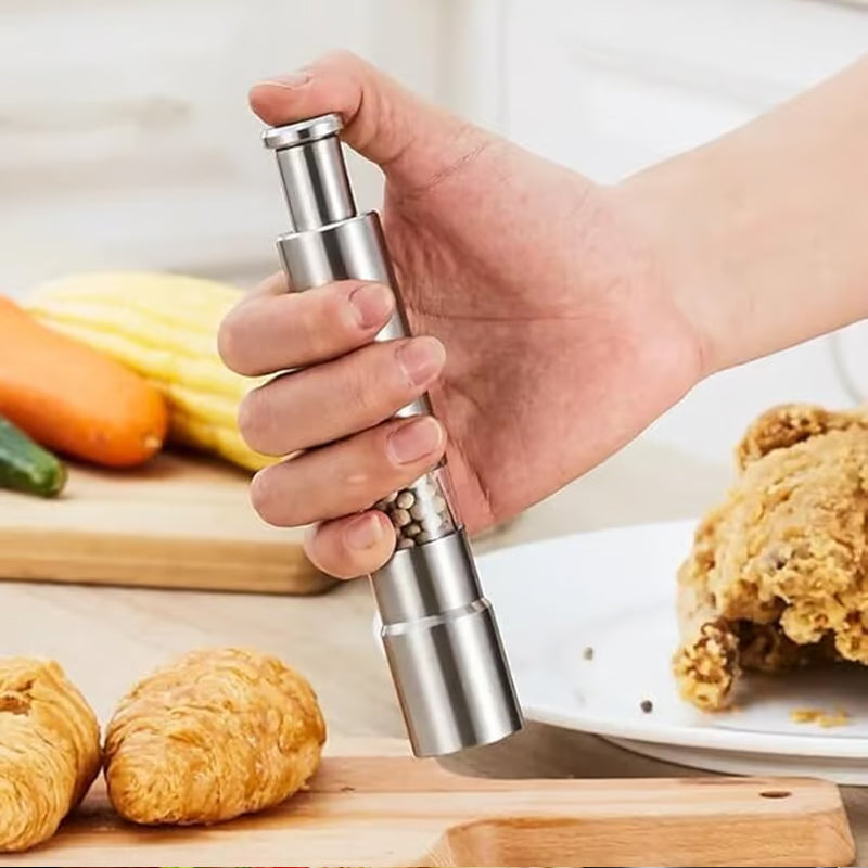 Heb je ooit gewenst dat kruiden zo makkelijk was als op een knop drukken? Met de Zout-, Peper- en Kruidenmolen is dat zo. Of je nu thuis kookt of gasten ontvangt, deze molen zorgt ervoor dat je altijd de perfecte hoeveelheid kruiden binnen handbereik hebt. Geen gedraai meer, geen rommel meer, alleen precisie en stijl - wat is er niet om van te houden?